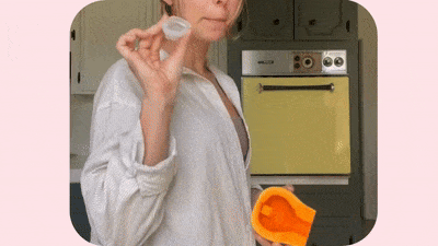 Auto-dumping is a natural "reset" that happens when you use the bathroom. Your pelvic muscles shift the disc just enough to empty excess flow into the toilet without you having to remove it. It tucks back into place immediately after, so you stay clean and protected for the full 12 hours.